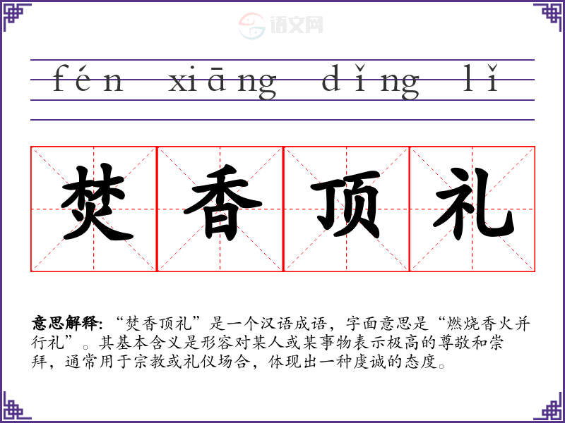 “焚香顶礼”源于古代的仪式和礼仪。焚香是古代祭祀时常用的方式,表示对神灵的敬仰和祈求。而“顶礼”则是指用头触地的礼节,表明极大的尊敬。这个成语的历史背景与传统文化中重视礼仪和尊敬的观念密切相关。