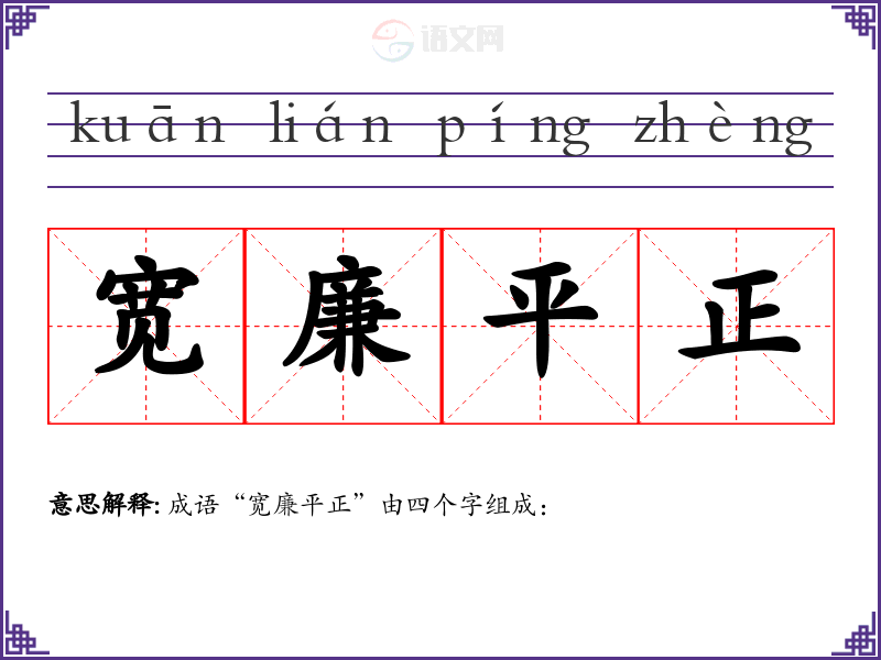 整体而言,“宽廉平正”指的是一种为人处世的态度和行为准则,强调在处理事务时要宽容大度、清正廉洁、公平公正。