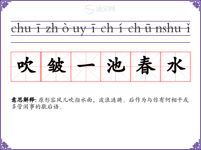 原形容风儿吹指水面,波浪涟漪。后作为与你有何相干或多管闲事的歇后语。