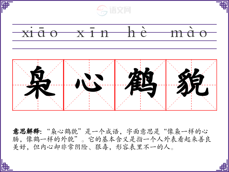 - 文学作品中,作者可能用“枭心鹤貌”来描绘角色的双重性格。