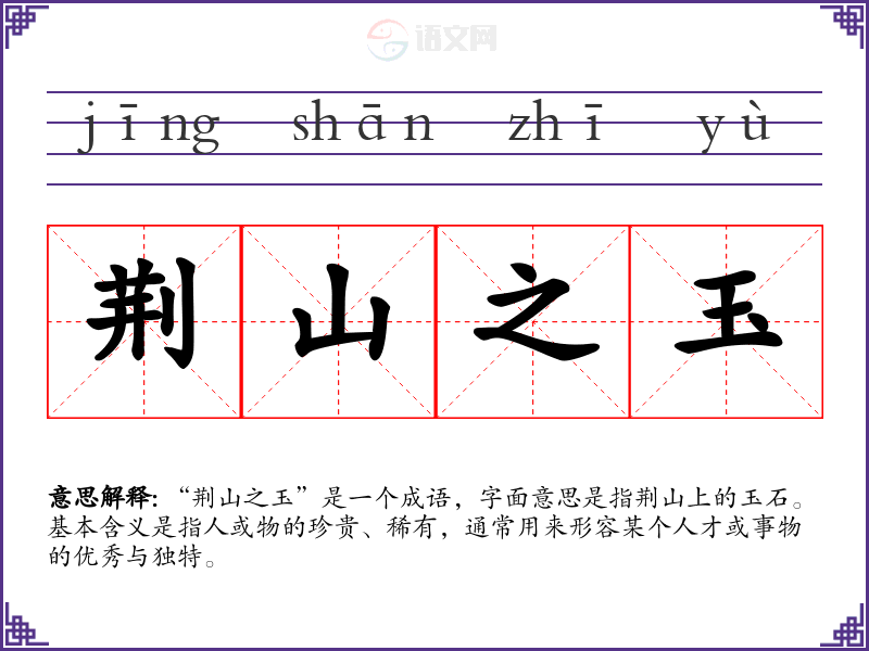 “荆山之玉”是一个成语,字面意思是指荆山上的玉石。基本含义是指人或物的珍贵、稀有,通常用来形容某个人才或事物的优秀与独特。