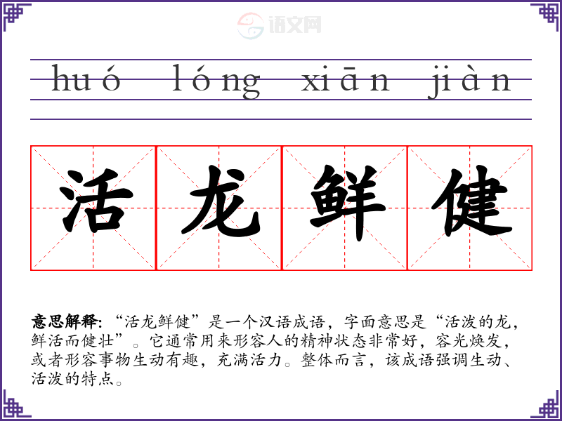 “活龙鲜健”让我联想到青春和活力的状态,它激励我在生活中保持积极向上的心态。在表达时,这个成语能够传达出一种生动的情感,使交流更具感染力。
