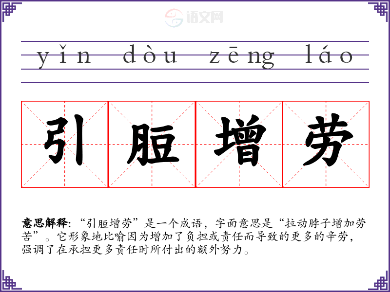 “引脰增劳”是一个成语,字面意思是“拉动脖子增加劳苦”。它形象地比喻因为增加了负担或责任而导致的更多的辛劳,强调了在承担更多责任时所付出的额外努力。