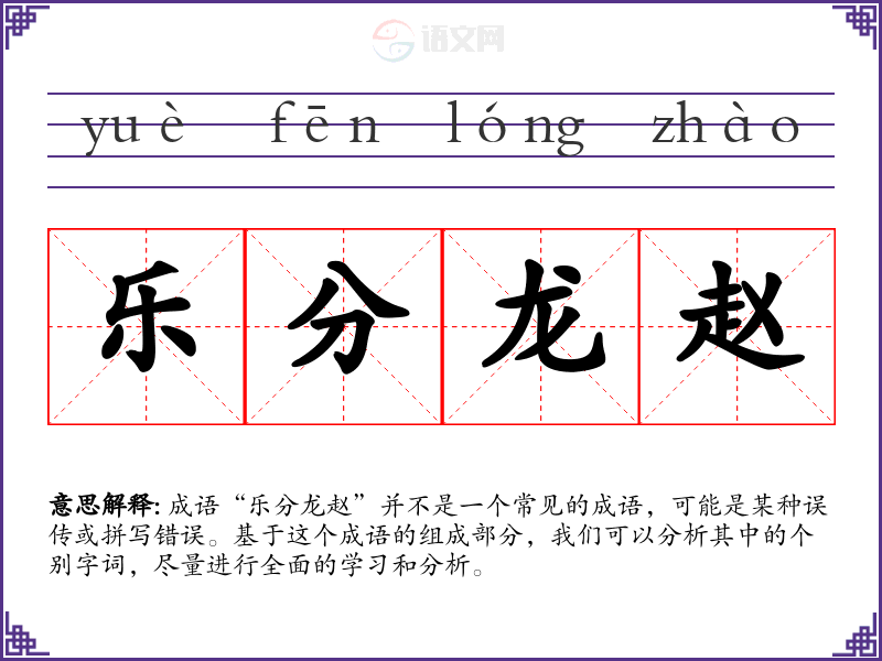 成语“乐分龙赵”并不是一个常见的成语,可能是某种误传或拼写错误。基于这个成语的组成部分,我们可以分析其中的个别字词,尽量进行全面的学*和分析。