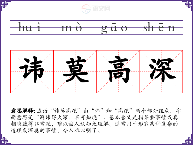 成语“讳莫高深”由“讳”和“高深”两个部分组成。字面意思是“避讳得太深,不可知晓”。基本含义是指某些事情或真相隐藏得非常深,难以被人认知或理解。通常用于形容某种复杂的道理或深奥的事情,令人难以明了。
