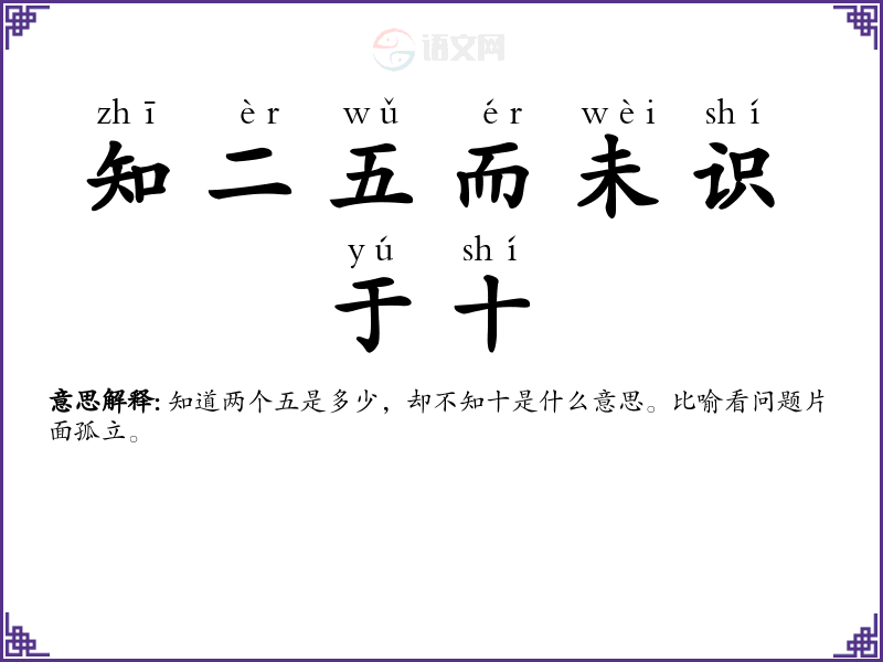 知道两个五是多少,却不知十是什么意思。比喻看问题片面孤立。