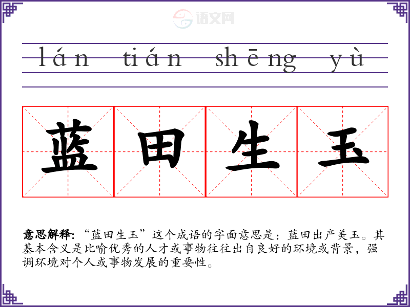 - 演讲:在谈论教育和成长环境的重要性时,可以引用该成语,强调“蓝田生玉”的道理。