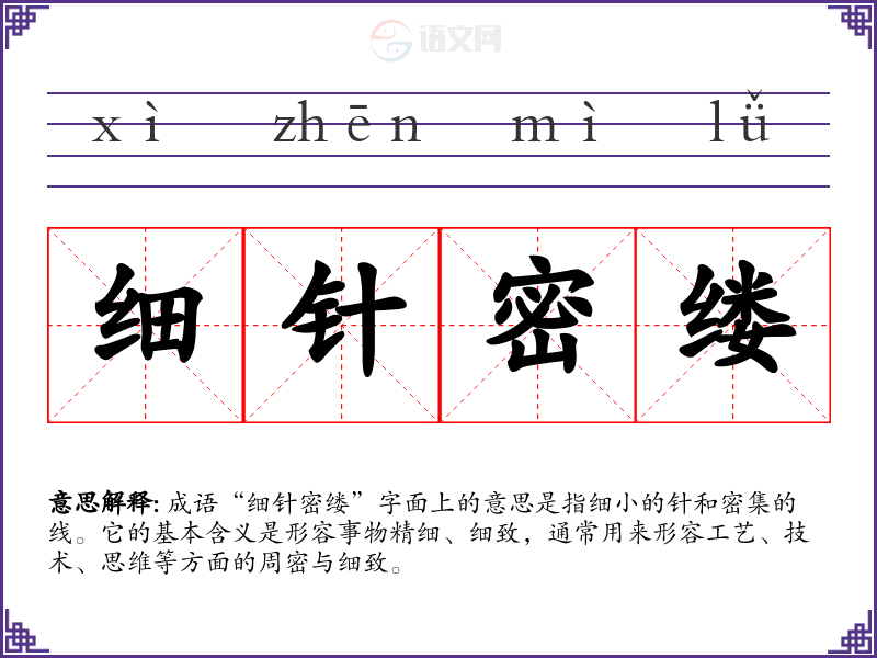 成语“细针密缕”字面上的意思是指细小的针和密集的线。它的基本含义是形容事物精细、细致,通常用来形容工艺、技术、思维等方面的周密与细致。