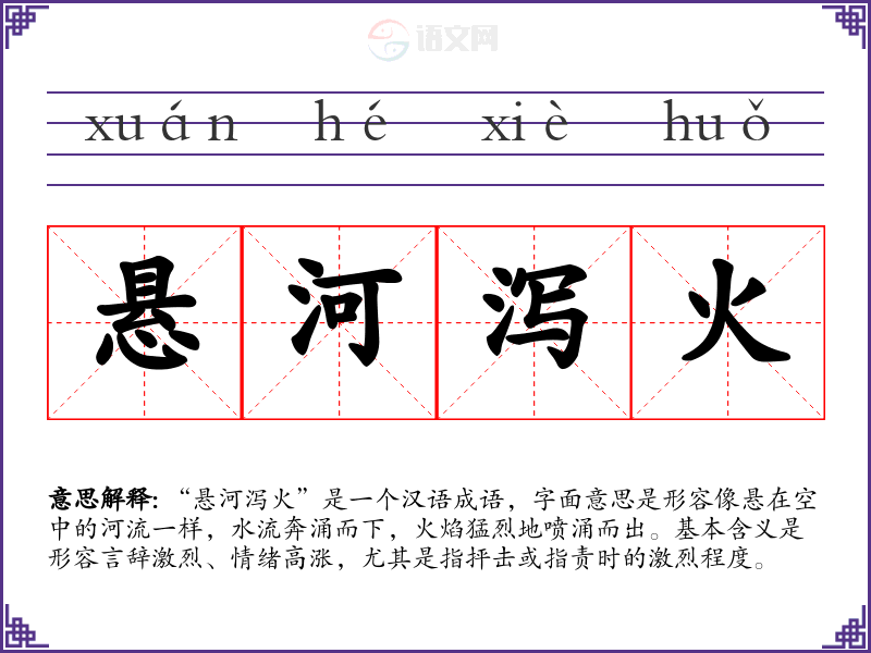 通过对“悬河泻火”的学,我深刻体会到语言的力量和情感的表达在交流中的重要性。这个成语不仅丰富了我的词汇,也为我在语言学和表达中增添了更多的表现力,让我在各种场合中能够更好地传达自己的情感和观点。