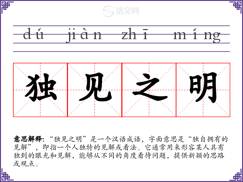 通过对“独见之明”的学习,我认识到独立思考的重要性。这不仅丰富了我的语言表达,也激励我在未来的交流中,勇于分享自己的观点,珍视每个人的独到见解。