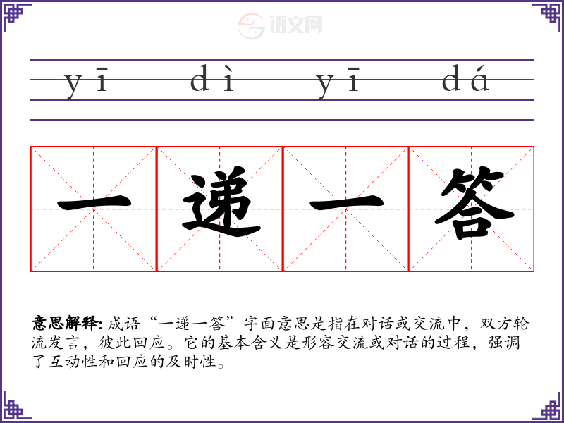 成语“一递一答”字面意思是指在对话或交流中,双方轮流发言,彼此回应。它的基本含义是形容交流或对话的过程,强调了互动性和回应的及时性。