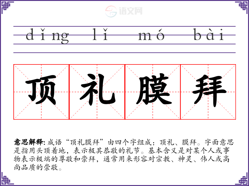 - 日常对话:在谈论某位伟人或偶像时,可以用“顶礼膜拜”来表达个人的崇拜之情。