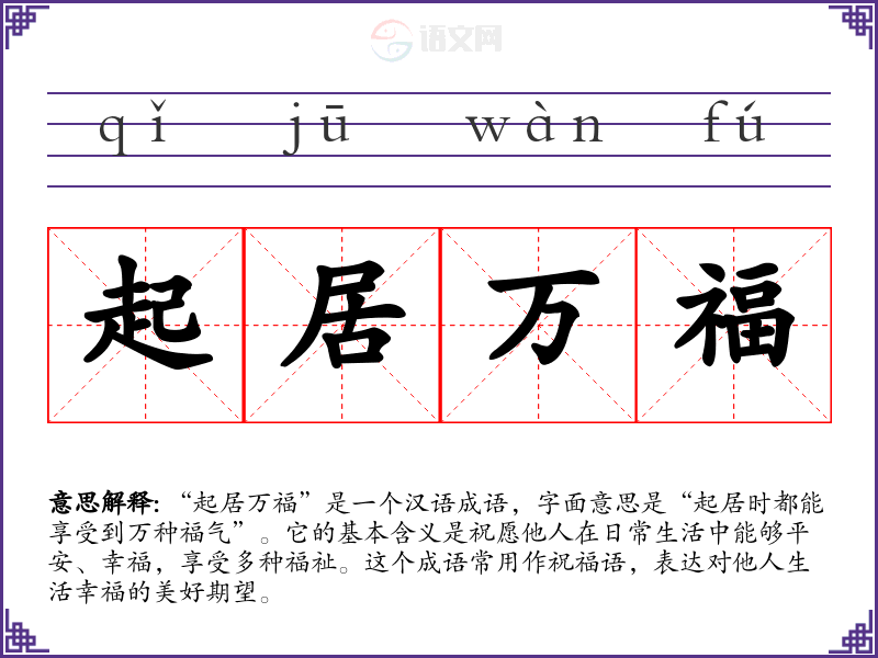 通过对“起居万福”的学,我认识到这个成语不仅是一个简单的祝福语,更是文化传承与人际关系的重要体现。在语言学中,掌握这样的成语能帮助我更好地理解和表达情感,使交流更加丰富和生动。
