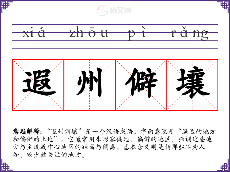 “遐州僻壤”源自古代地理概念,其中“遐”表示遥远,“州”可以引申为行政区域,“僻”指偏僻,“壤”意为土地。虽然没有明确的文学出处,但可以推测其形成与古代对遥远地区的描绘有关,反映了人们对偏远地区的认知与态度。