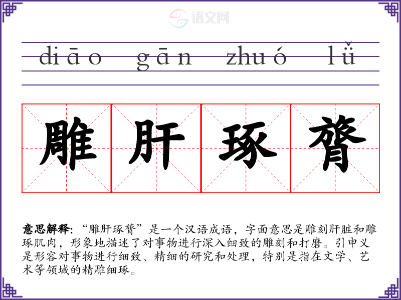 通过对“雕肝琢膂”的学,我对细致与专注的价值有了更深的理解。这不仅增强了我的语言表达能力,也让我在生活中更加注重过程与细节的重要性。这个成语在我今后的学与工作中,都具有指导意义。