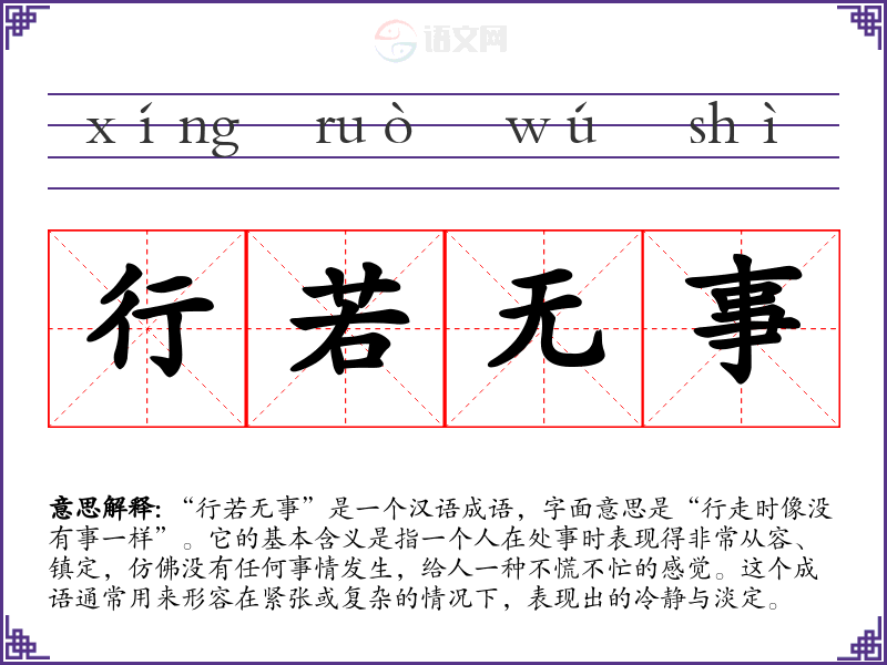 - 演讲:在演讲中可以用来强调冷静应对挑战的重要性,例如:“在危机时刻,行若无事是我们成功的关键。”