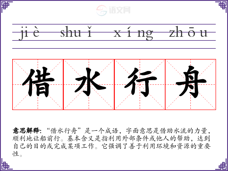 “借水行舟”是一个成语,字面意思是借助水流的力量,顺利地让船前行。基本含义是指利用外部条件或他人的帮助,达到自己的目的或完成某项工作。它强调了善于利用环境和资源的重要性。
