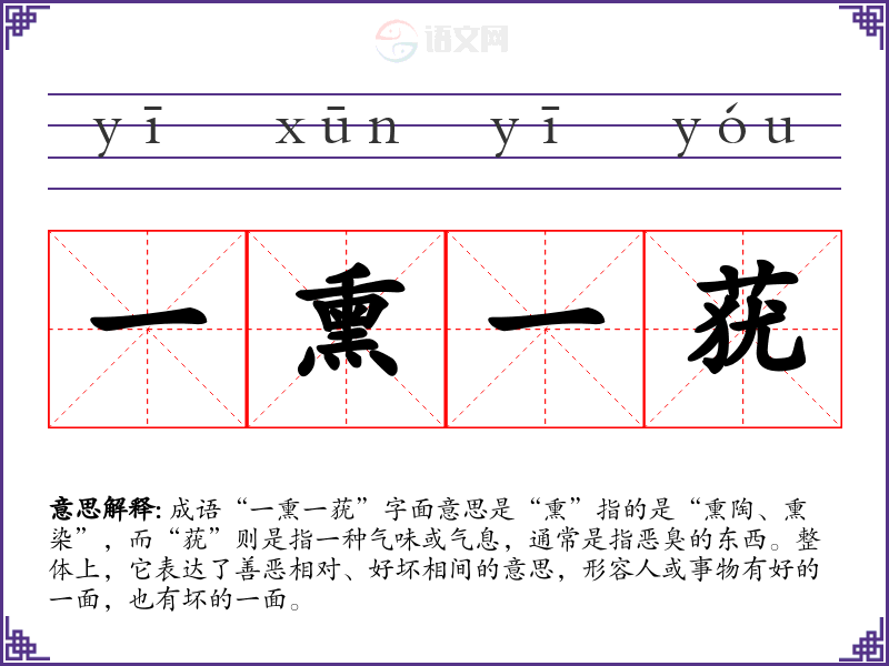 “一熏一莸”出自《左传》,原句为“善者一熏,恶者一莸”。这个成语反映了春秋时期社会风气的复杂,既有正面影响,也有负面影响,说明在社会中,任何事物都有可能带来不同的结果。