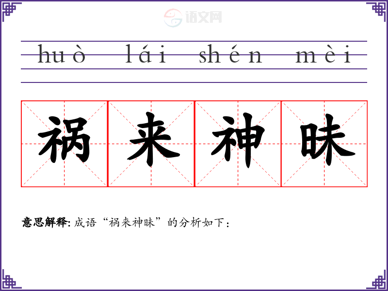 “祸来神昧”并非广为人知的成语,可能是对某些古典文学或哲学思想的衍生。它与**传统文化中的因果法则和命运观念相关,强调人们在面对潜在危机时的盲目与无知。虽然没有明确的文献出处,但可以联想到《易经》等古典书籍中对于天命和命运的讨论。