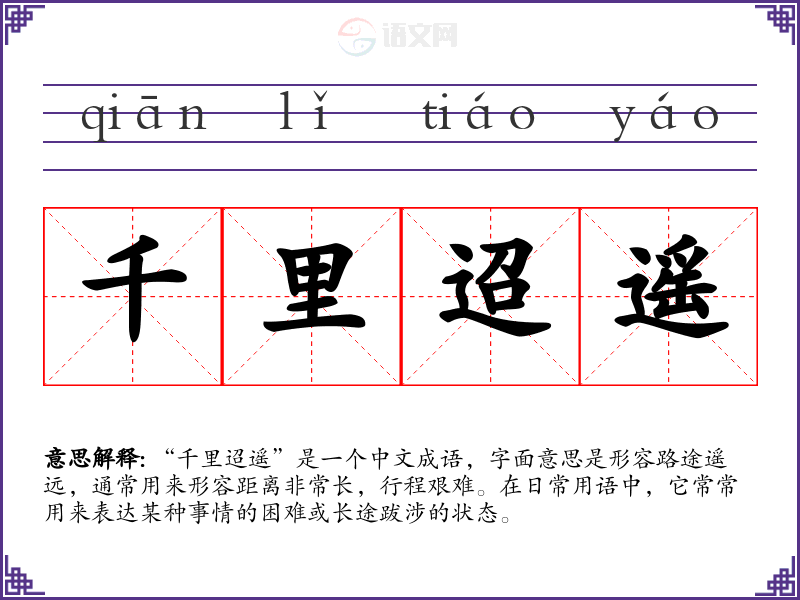 “千里迢遥”是一个中文成语,字面意思是形容路途遥远,通常用来形容距离非常长,行程艰难。在日常用语中,它常常用来表达某种事情的困难或长途跋涉的状态。
