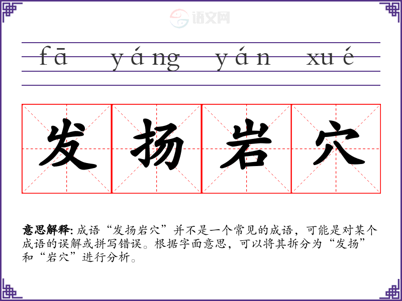 成语“发扬岩穴”并不是一个常见的成语,可能是对某个成语的误解或拼写错误。根据字面意思,可以将其拆分为“发扬”和“岩穴”进行分析。