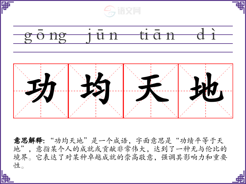 - 演讲:在演讲中,特别是表彰某位杰出人物时,使用“功均天地”可以使语言更为生动和有力。