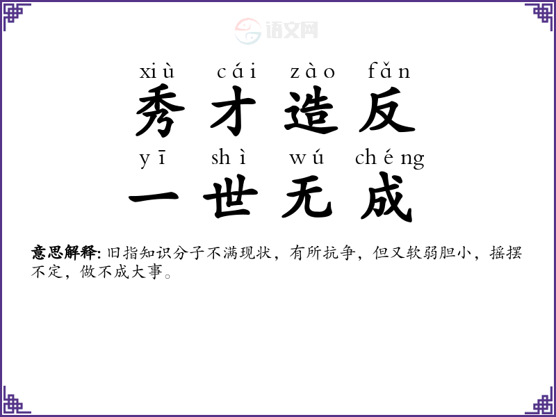 秀才造反,一世无成字义分解