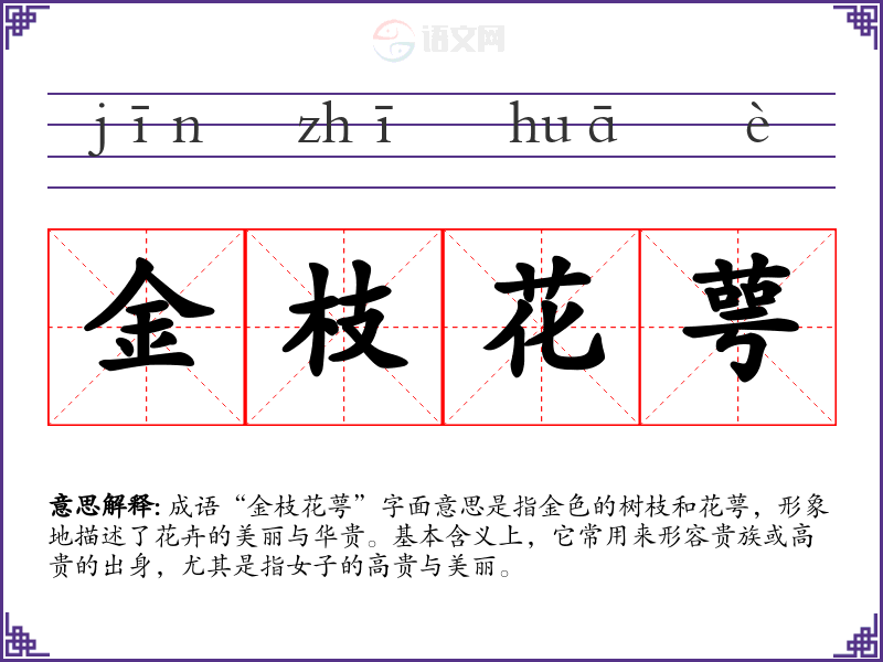 成语“金枝花萼”字面意思是指金色的树枝和花萼,形象地描述了花卉的美丽与华贵。基本含义上,它常用来形容贵族或高贵的出身,尤其是指女子的高贵与美丽。