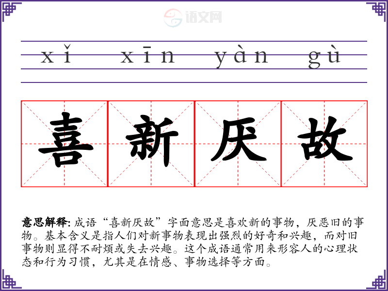- 好新厌旧:意思相近,强调对新事物的追求和对旧事物的厌倦。