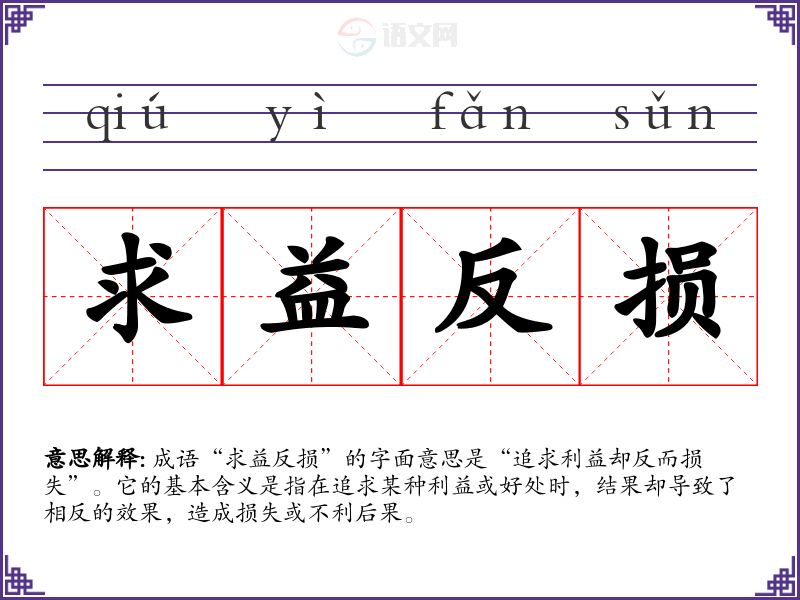 成语“求益反损”的字面意思是“追求利益却反而损失”。它的基本含义是指在追求某种利益或好处时,结果却导致了相反的效果,造成损失或不利后果。