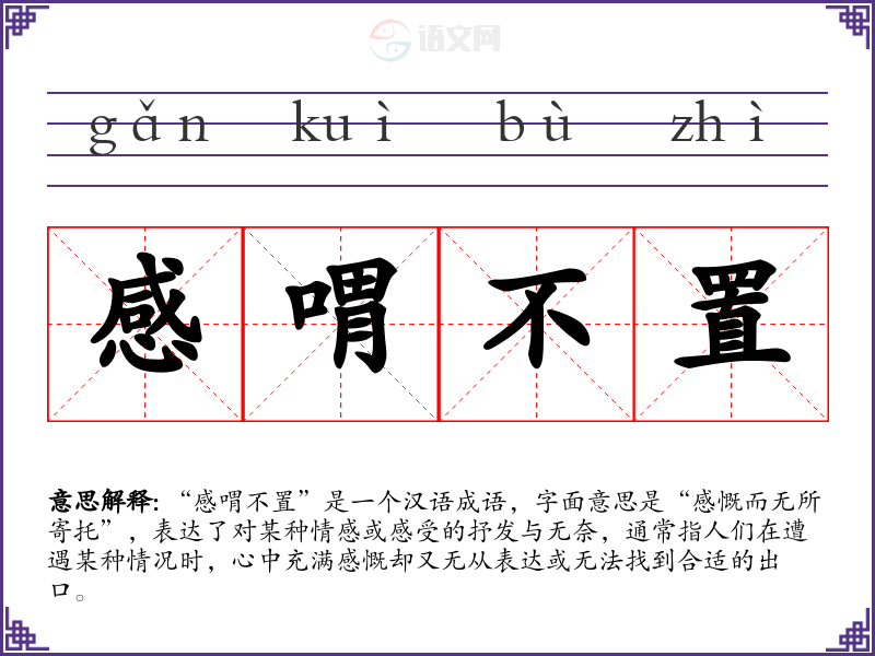 - 文学作品:常见于古诗词中,诗人通过“感喟不置”表达对人生、自然、爱情等主题的感触。
