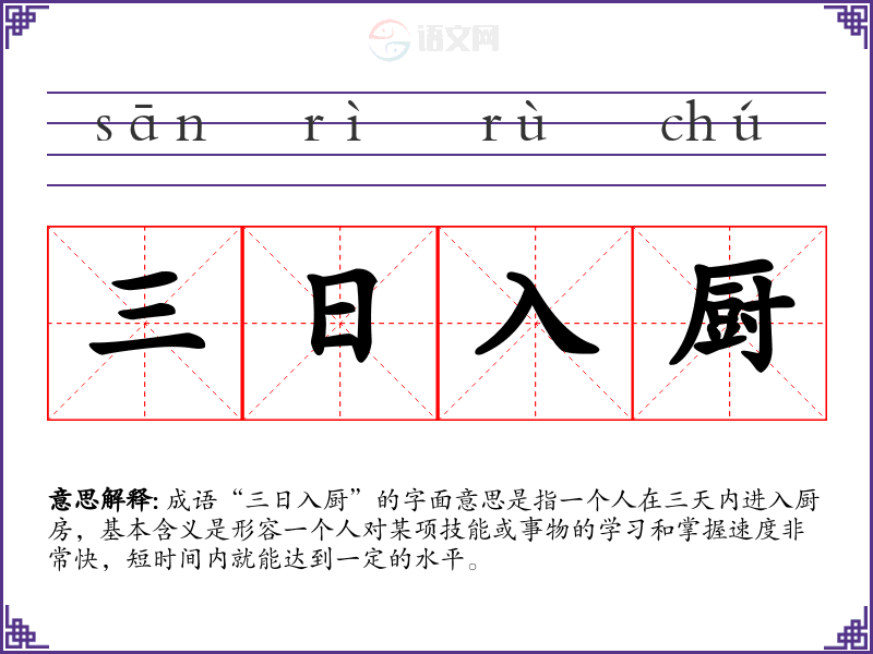 通过对“三日入厨”的深入理解,我认识到它不仅是对学能力的赞美,也是对个人努力和适应能力的认可。在我的语言学和表达中,这个成语提醒我保持开放的心态,勇于尝试新事物,并相信自己能够迅速成长。