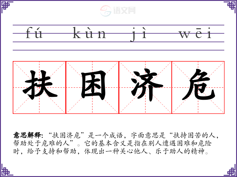 - 演讲:在慈善活动或公益演讲中,提到“扶困济危”可以激励更多人参与帮助他人。