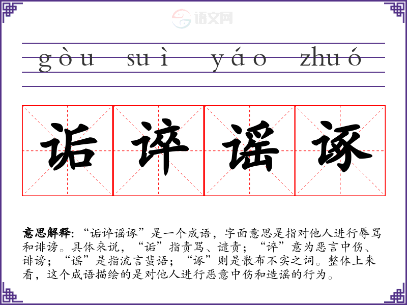 通过对“诟谇谣诼”的学,我意识到这不仅是一个成语,更是对人际关系和社会道德的深刻反思。它在语言学和表达中提醒我,言语的力量不可小觑,必须保持诚实与尊重。