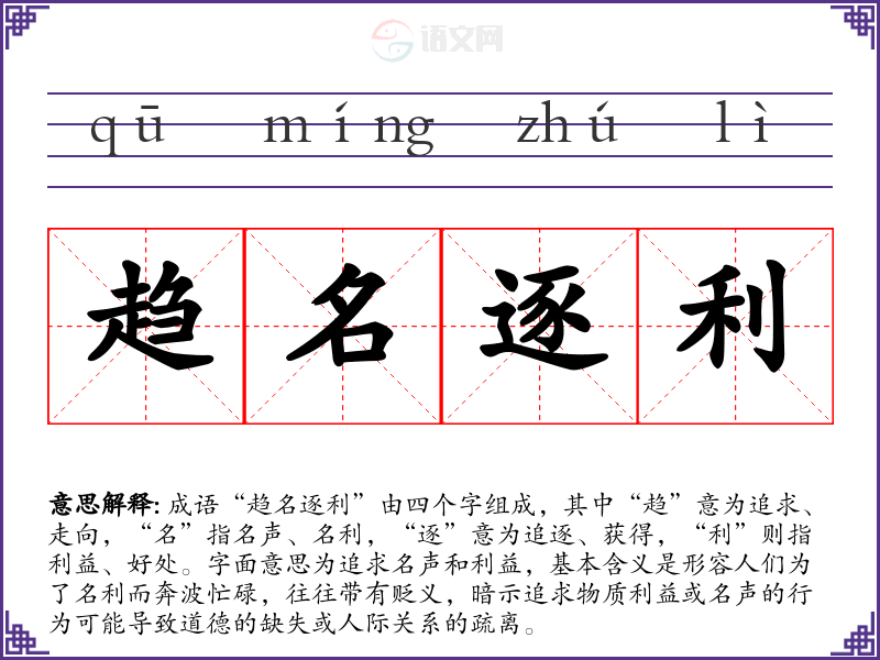 趋名逐利字义分解