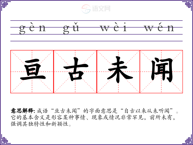 “亘古未闻”这一成语的来源并没有明确的文献记载,但可以推测其背后反映了古代人们对历史的深刻认知。古人常常以“亘古”来指代悠久的历史,而“未闻”则表示未曾听闻过的事情。这样的组合,能够有效传达出某件事情的稀有性和重要性。