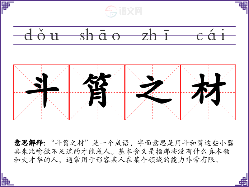 “斗筲之材”是一个成语,字面意思是用斗和筲这些小器具来比喻微不足道的才能或人。基本含义是指那些没有什么真本领和大才华的人,通常用于形容某人在某个领域的能力非常有限。