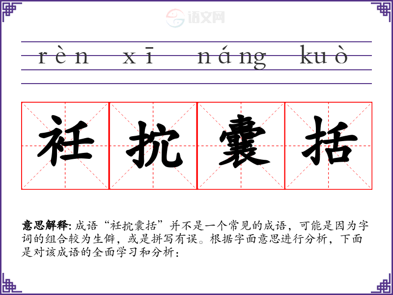 成语“衽抭囊括”并不是一个常见的成语,可能是因为字词的组合较为生僻,或是拼写有误。根据字面意思进行分析,下面是对该成语的全面学习和分析:
