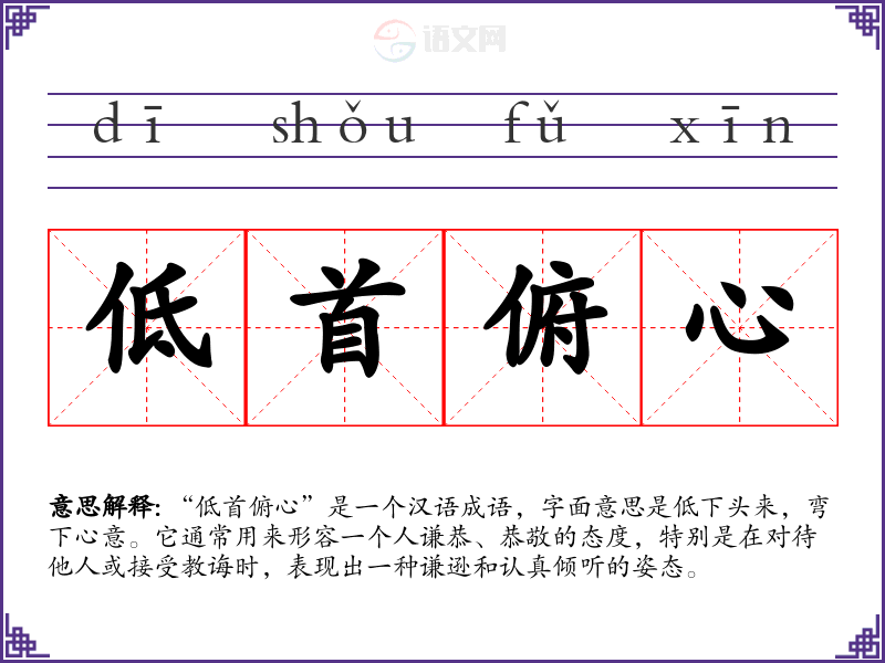 “低首俯心”让我联想到谦逊与尊重的力量。在当今社会,很多人因为过于自信而忽视他人的建议,而这种谦逊的态度能促进沟通与理解,使人际关系更加和谐。