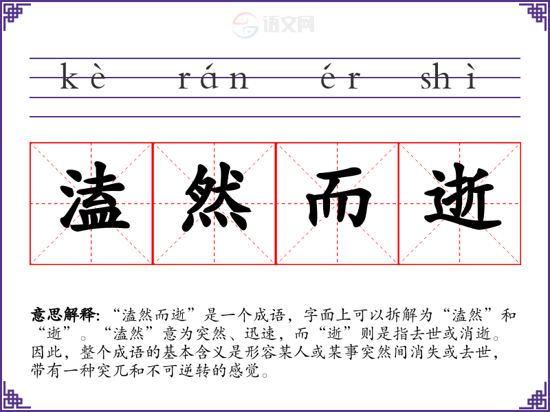 “溘然而逝”是一个成语,字面上可以拆解为“溘然”和“逝”。“溘然”意为突然、迅速,而“逝”则是指去世或消逝。因此,整个成语的基本含义是形容某人或某事突然间消失或去世,带有一种突兀和不可逆转的感觉。