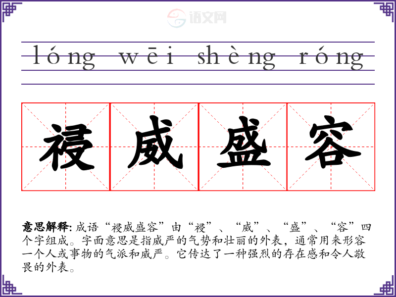 通过对“祲威盛容”的学,我对这个成语的理解更加深入,意识到它不仅仅是对外在形象的描述,更是对内在气质、力量和影响力的认可。这让我在语言学和表达中,能够更加自信地使用相关成语,丰富我的表达方式。