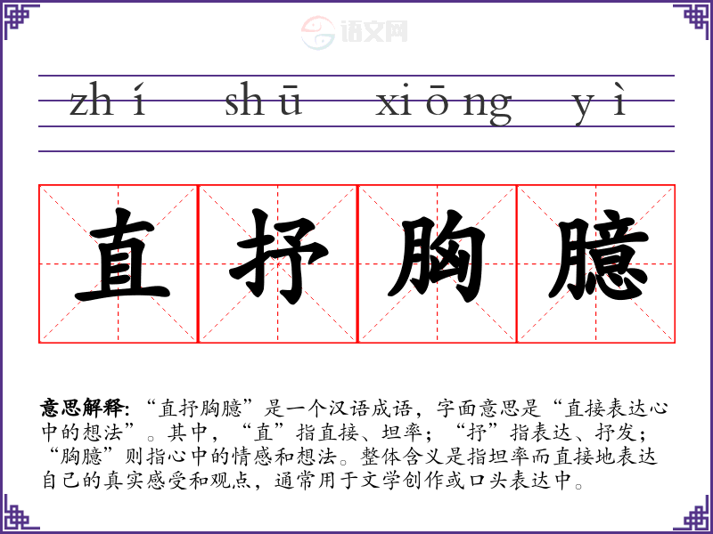 通过对“直抒胸臆”的学,我意识到坦诚表达在语言学和交流中的重要性。它不仅能增强沟通效果,更能增进人与人之间的理解和信任。在日常生活中,勇于直抒胸臆是一种值得推崇的品质。