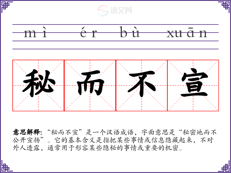“秘而不宣”是一个汉语成语,字面意思是“秘密地而不公开宣扬”。它的基本含义是指把某些事情或信息隐藏起来,不对外人透露,通常用于形容某些隐秘的事情或重要的机密。