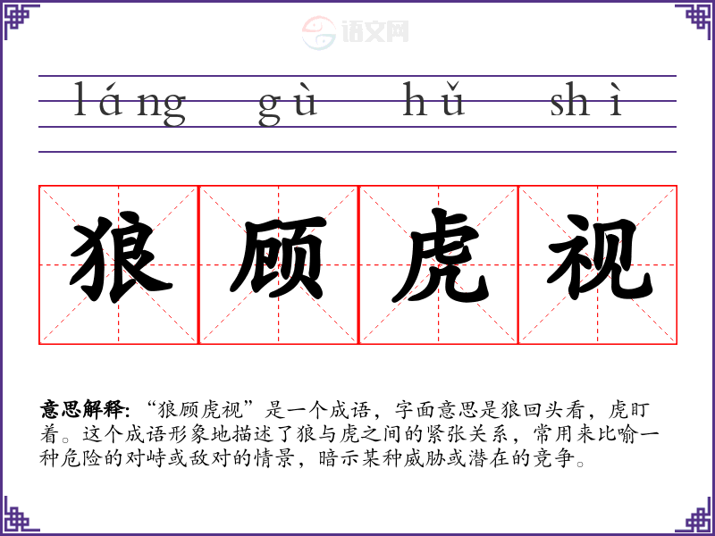 - 演讲:在描述商业竞争或政治斗争时,可以用“狼顾虎视”来形容紧张的局势。