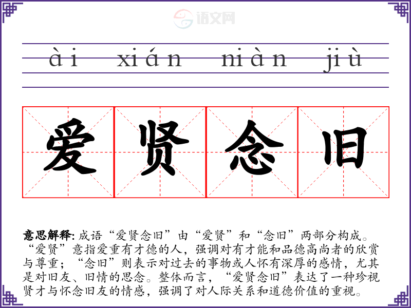 该成语的具体历史来源并不详尽,但可以推测它反映了**传统文化中对人才的重视和对旧情的珍惜。在古代,士人之间的交往强调忠诚与义气,因此“爱贤念旧”可以看作是对这种文化传统的传承。