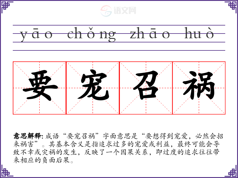 成语“要宠召祸”字面意思是“要想得到宠爱,必然会招来祸害”。其基本含义是指追求过多的宠爱或利益,最终可能会导致不幸或灾祸的发生,反映了一个因果关系,即过度的追求往往带来相应的负面后果。