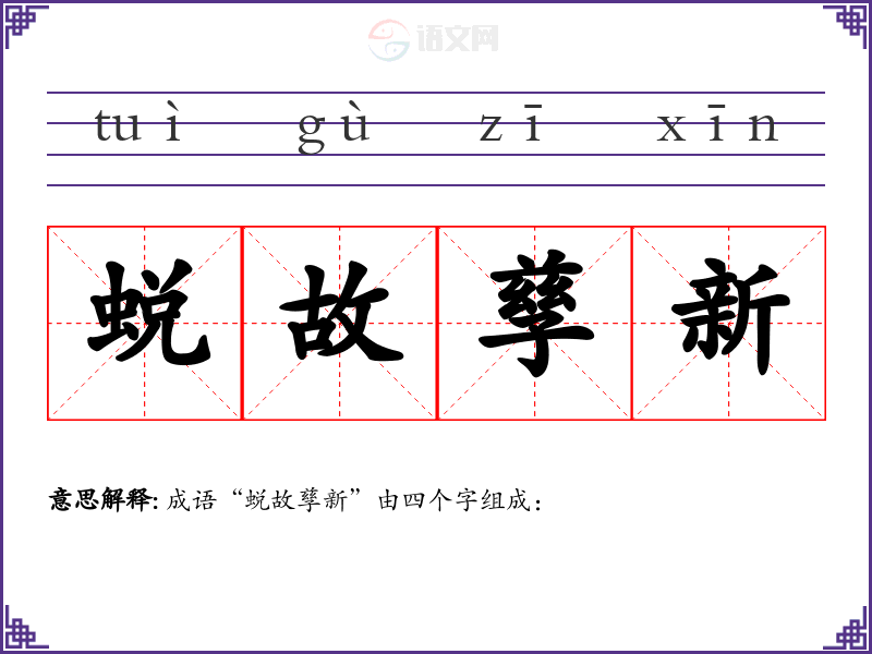 字面意思是通过蜕变,去掉旧的,获得新的生长。整体上表示一种更新的过程,强调在告别旧事物后迎接新事物的到来。