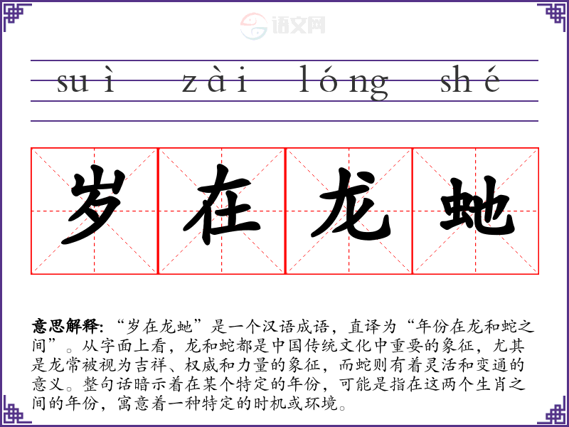 “岁在龙虵”是一个汉语成语,直译为“年份在龙和蛇之间”。从字面上看,龙和蛇都是**传统文化中重要的象征,尤其是龙常被视为吉祥、权威和力量的象征,而蛇则有着灵活和变通的意义。整句话暗示着在某个特定的年份,可能是指在这两个生肖之间的年份,寓意着一种特定的时机或环境。