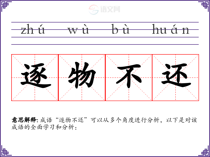 成语“逐物不还”可以从多个角度进行分析,以下是对该成语的全面学*和分析: