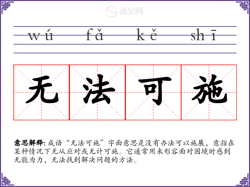 “无法可施”并没有明确的历史典故或文学出处,但其构成中“无”和“法”的结合表达了一种无计可施的状态。这个成语常见于文言文和现代汉语中,体现了对困境的无奈与沮丧。